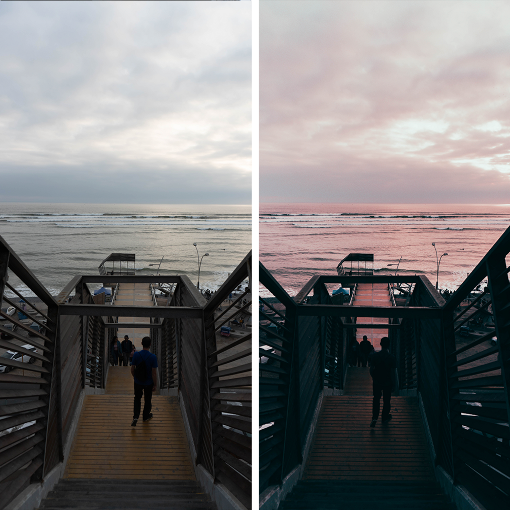 Gold Rose Preset, es de mis nuevos ajustes que juegan muy bien en paisajes de playas y cielos nublados dándole ese toque de cielo en atardecer.